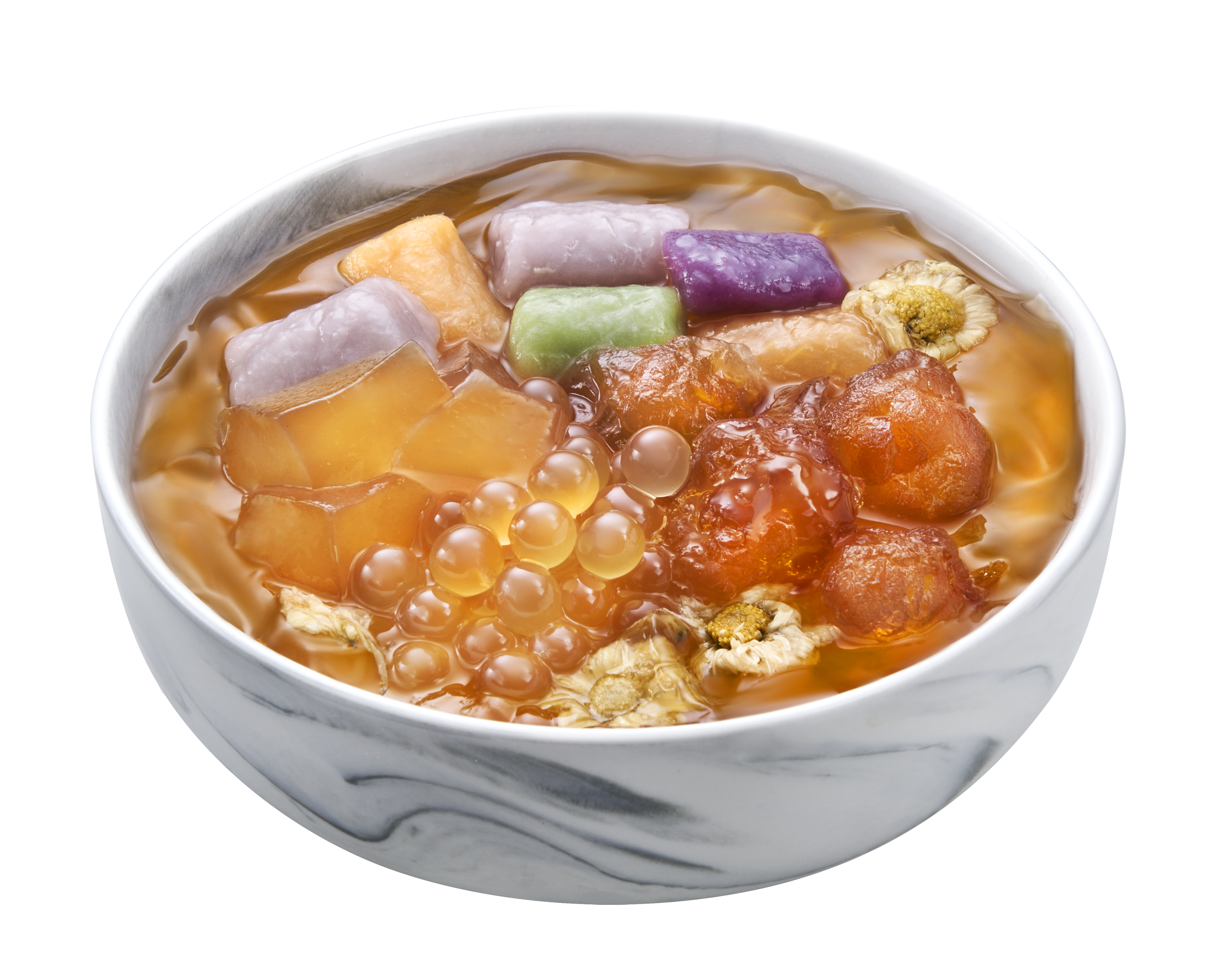 Chrysanthemum ai-yu, honey popping jelly, peach gum, chrysanthemum qhewy, taro balls (6pcs)
