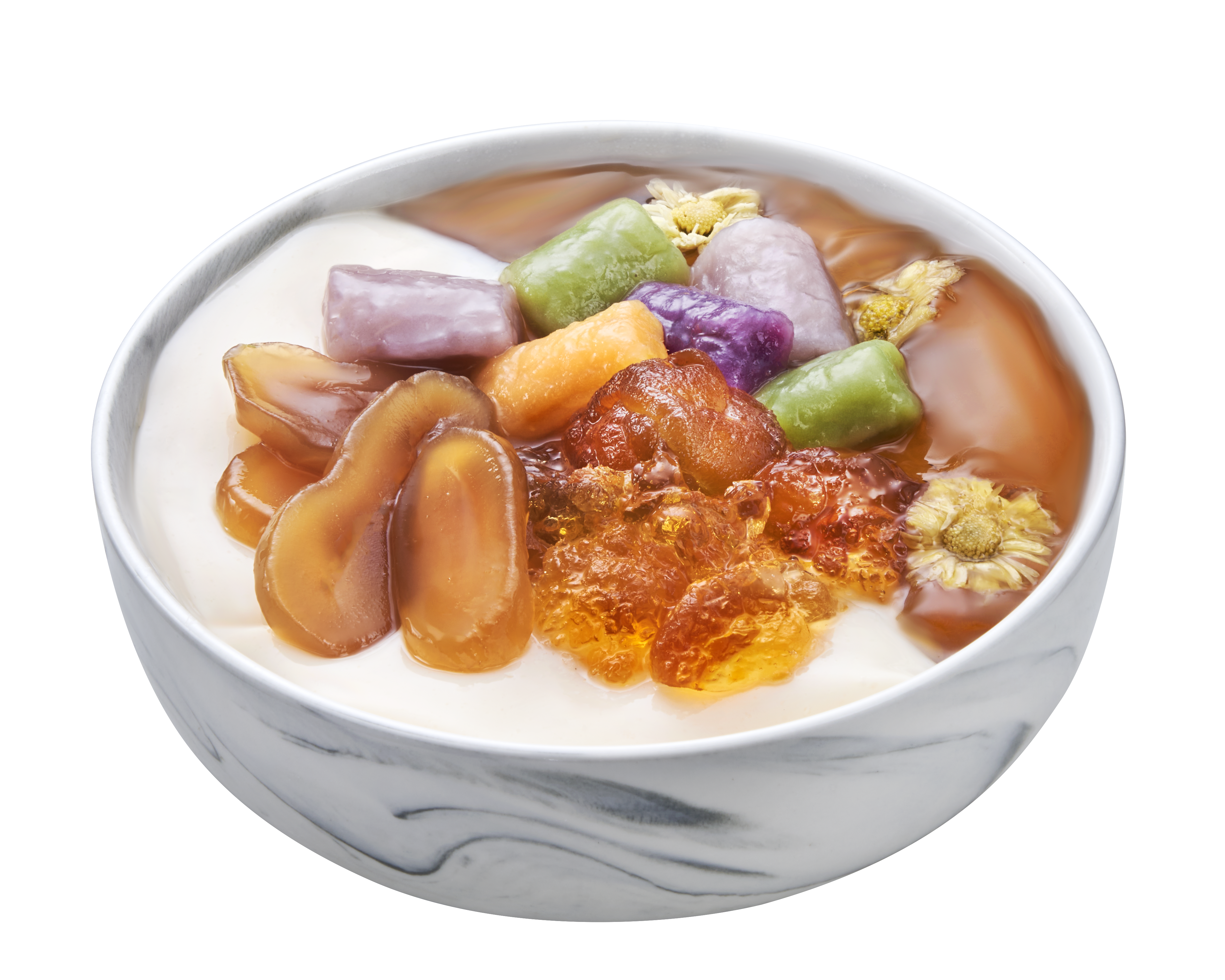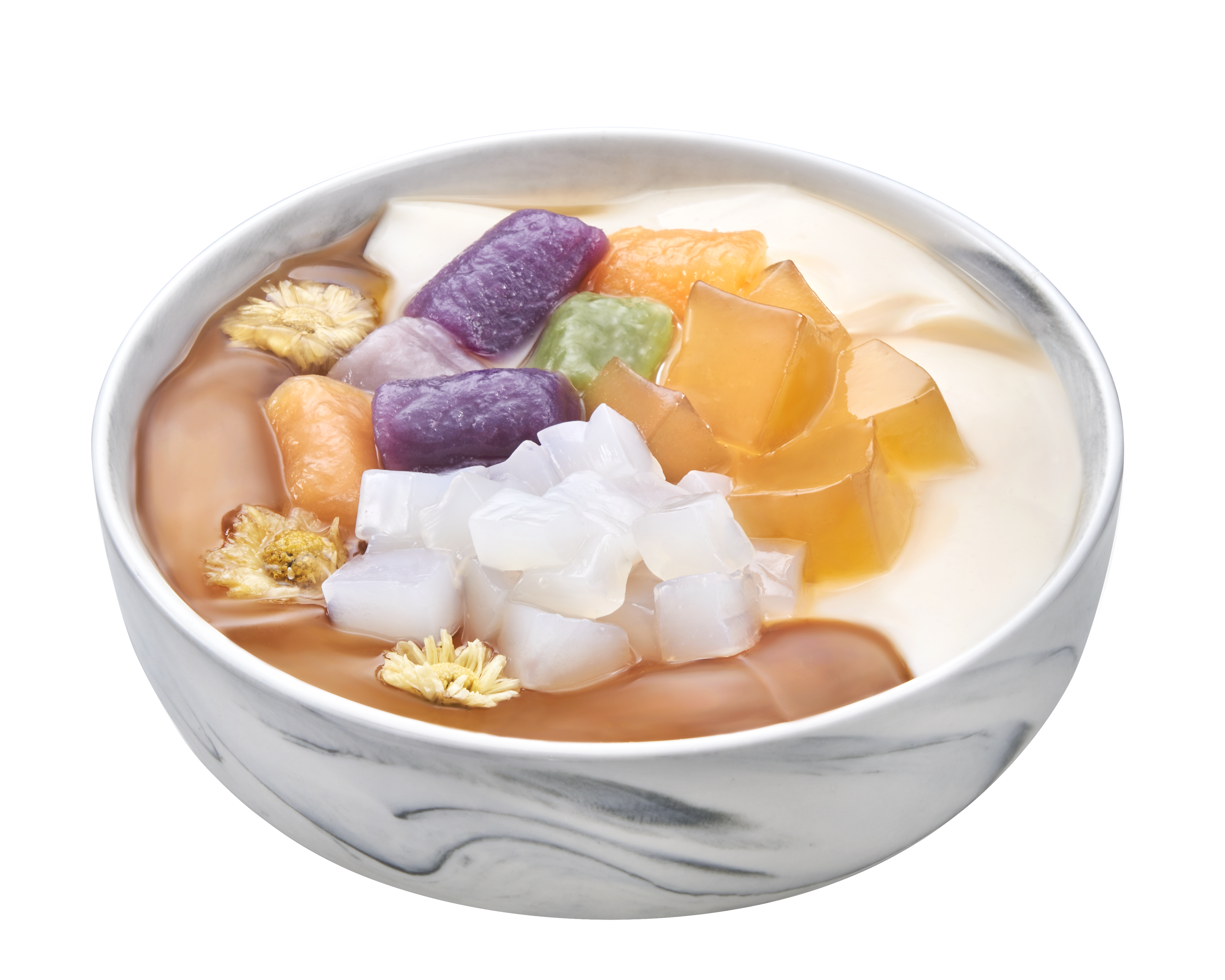 Chrysanthemum ai-yu, bean curd, chrysanthemum qhewy, nata de coco, taro balls (6pcs)