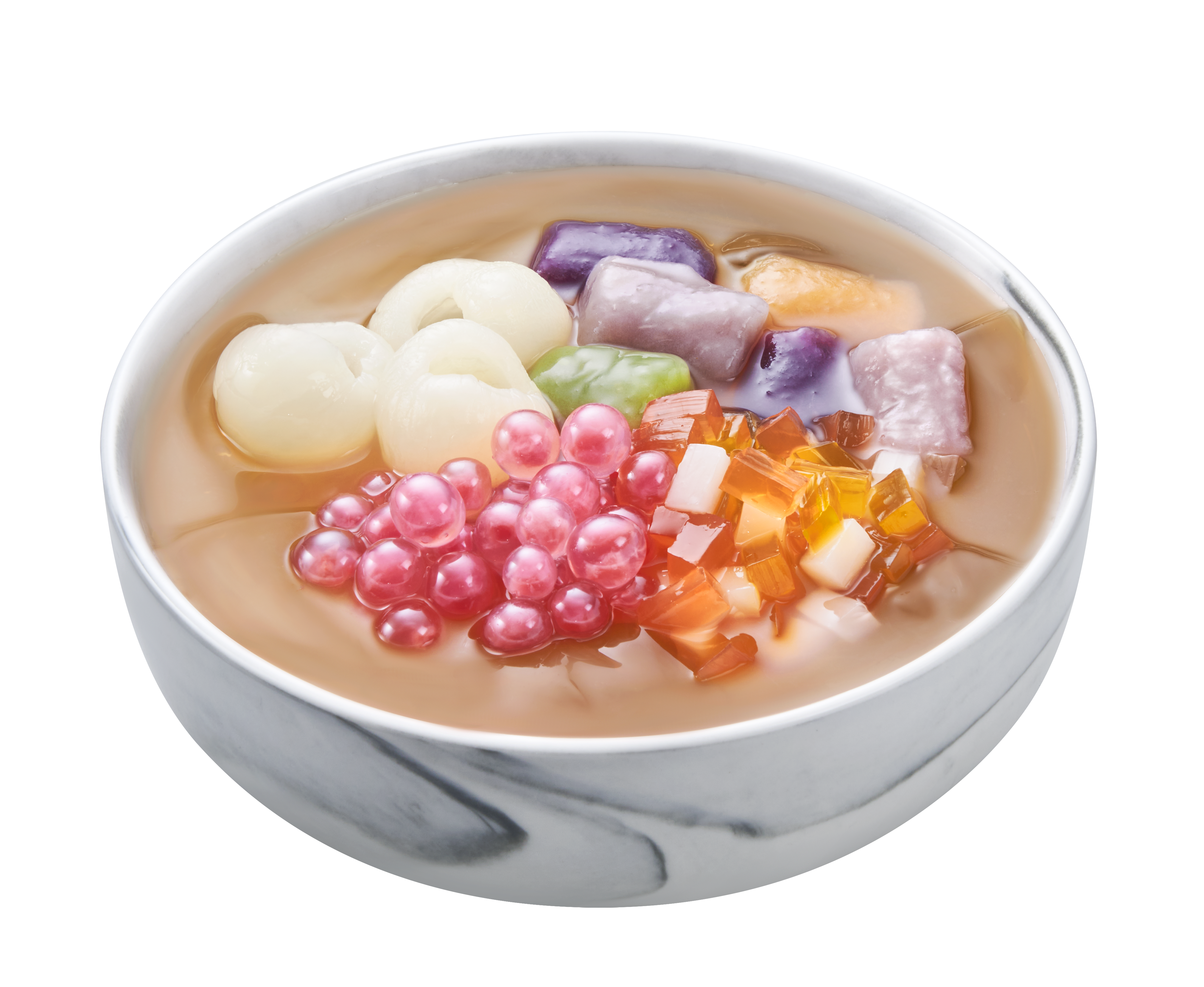 Ai-yu jelly, lime squash, pitted longan, water chestnut pop, konjac jelly, taro balls (6pcs)