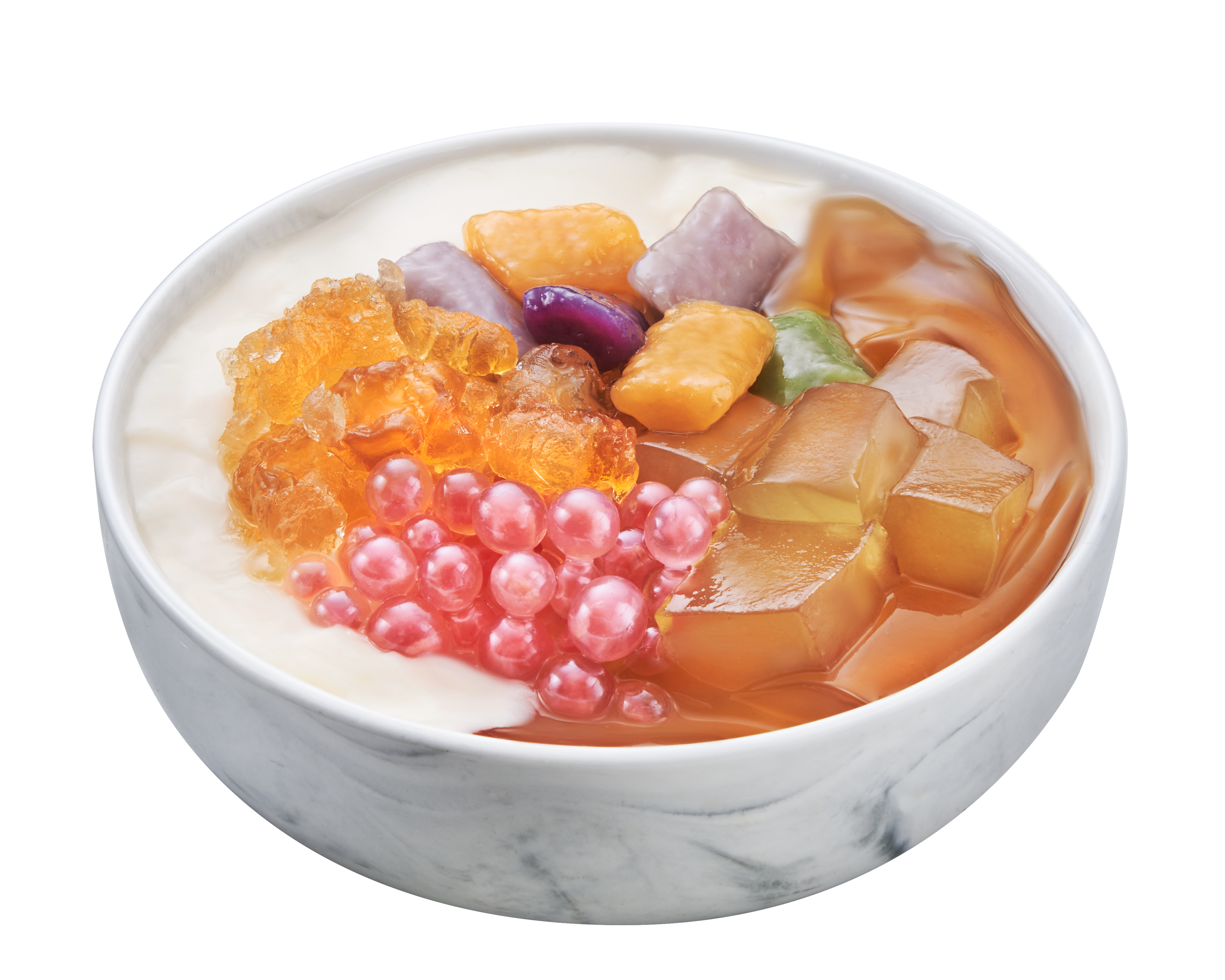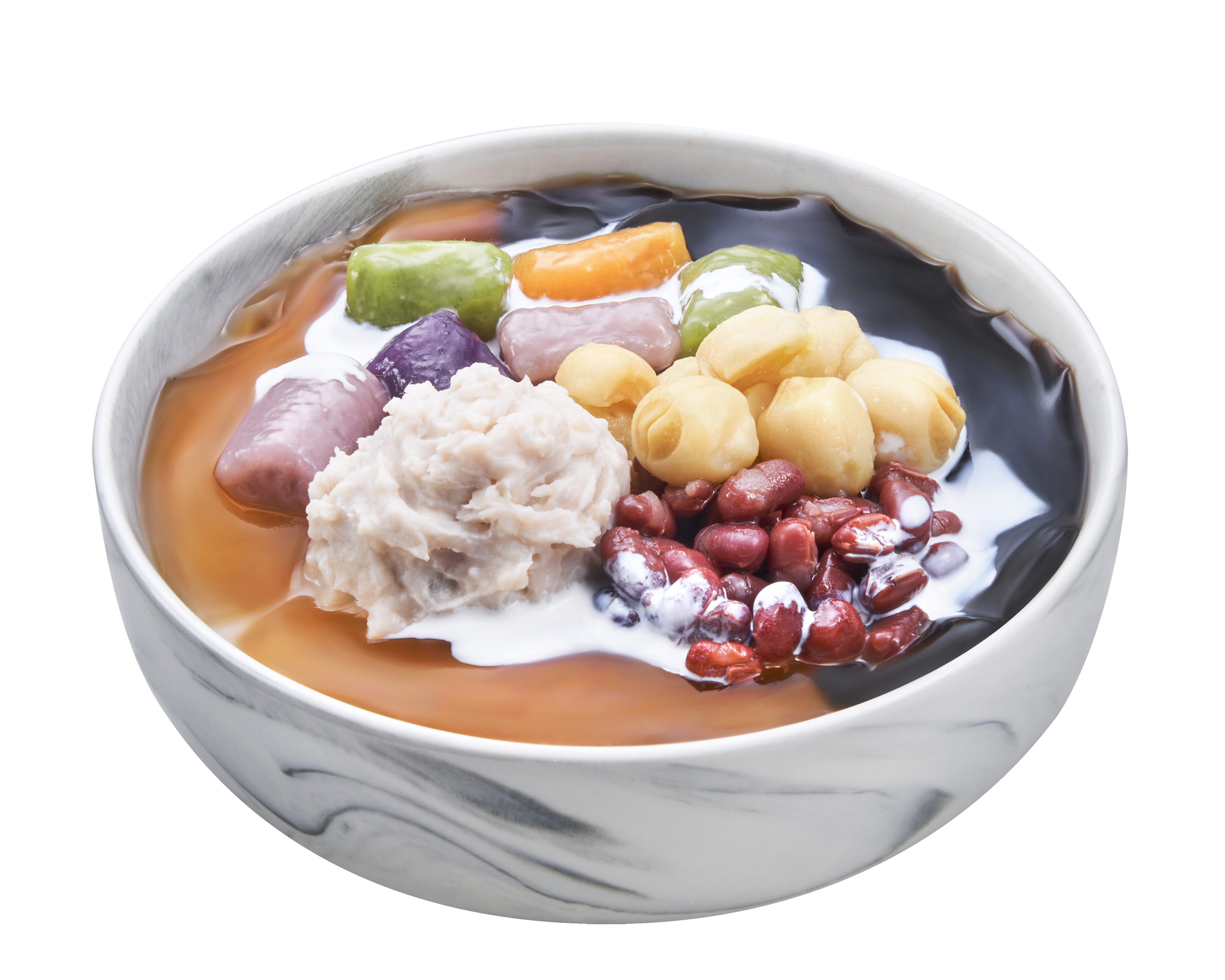 Bean curd, ai-yu jelly, peach gum, chrysanthemum qhewy, water chestnut pop and taro balls (6pcs)
