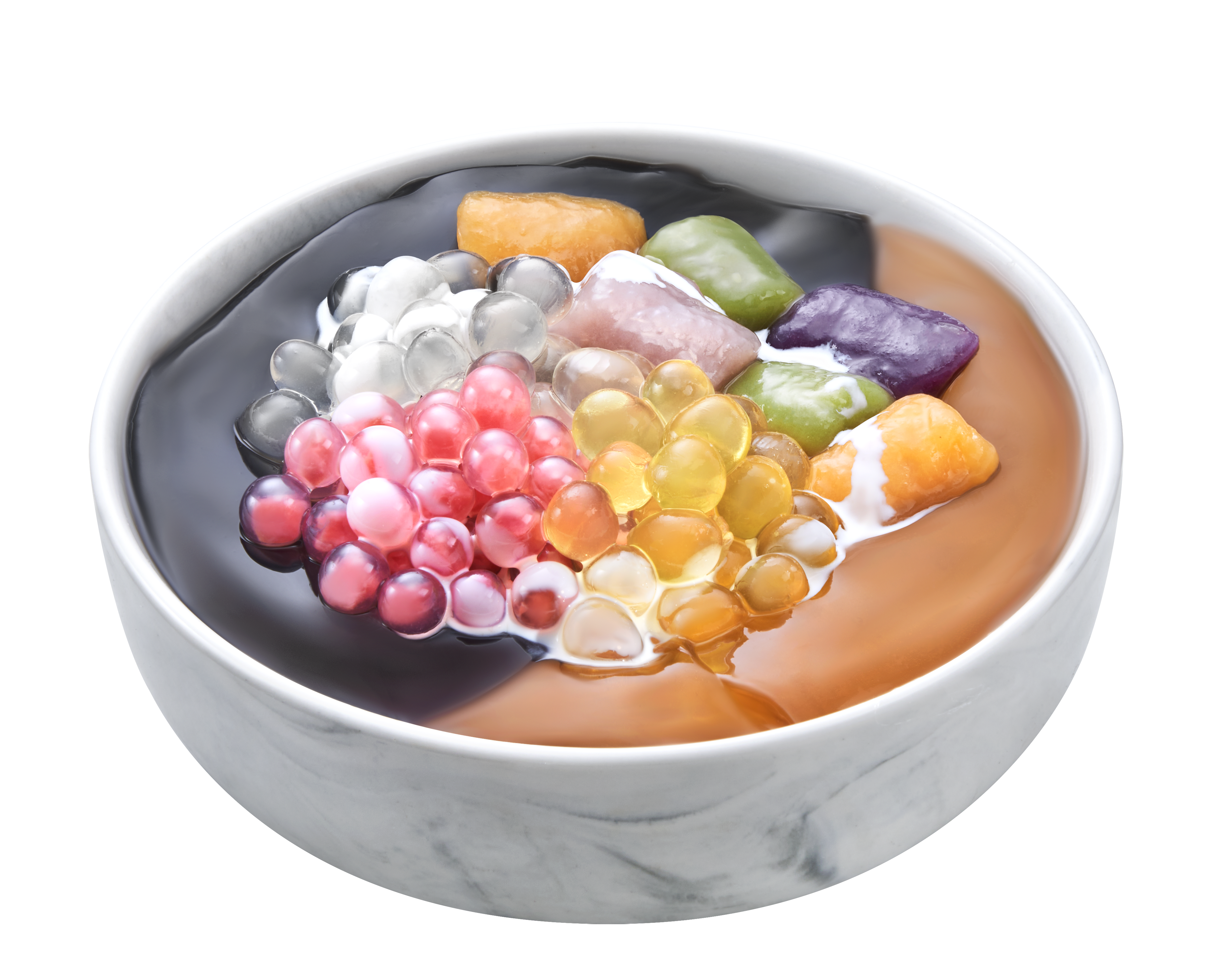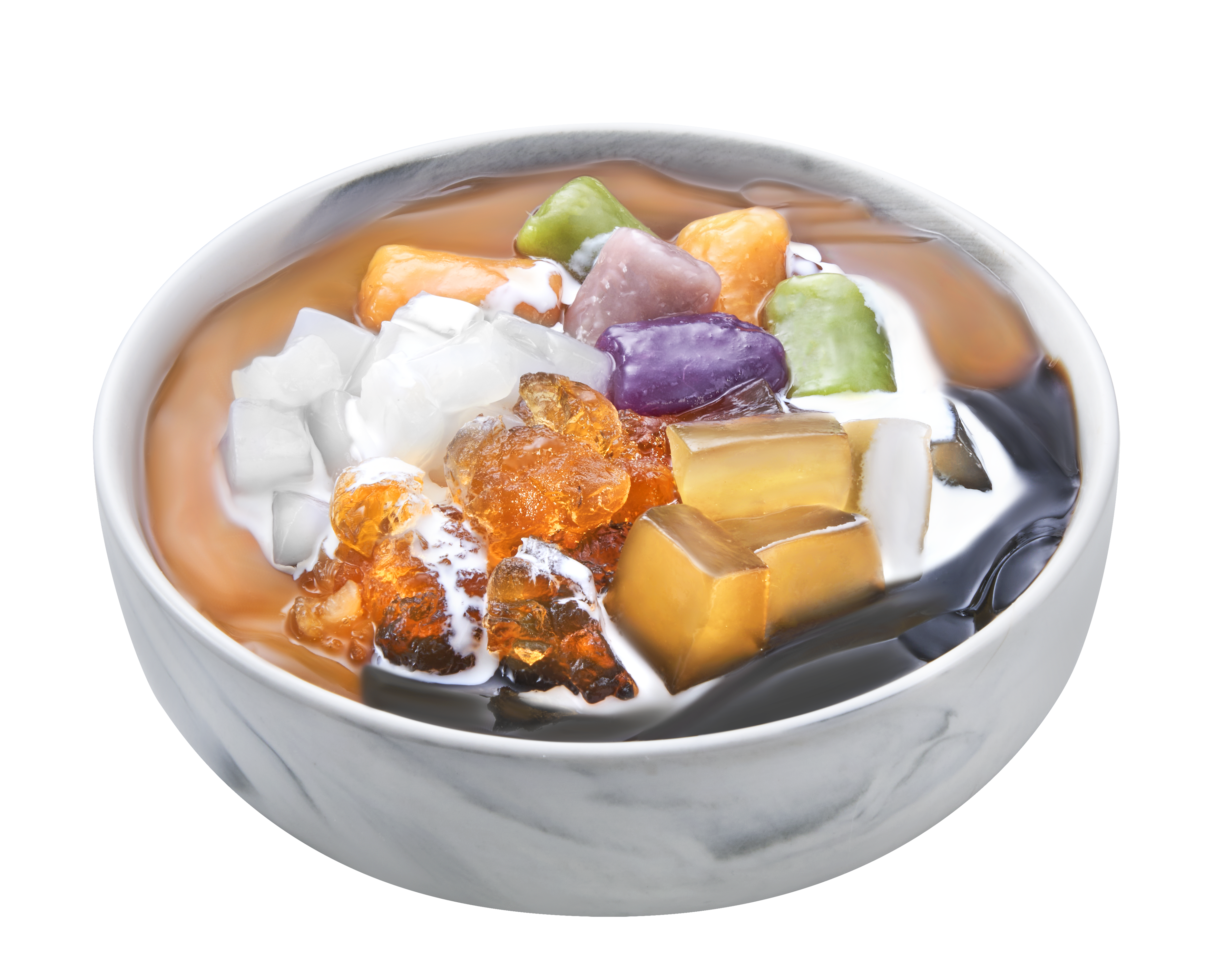Grass jelly, ai-yu jelly, nata de coco, peach gum, chrysanthemum qhewy, milk ball and taro balls (6pcs)
